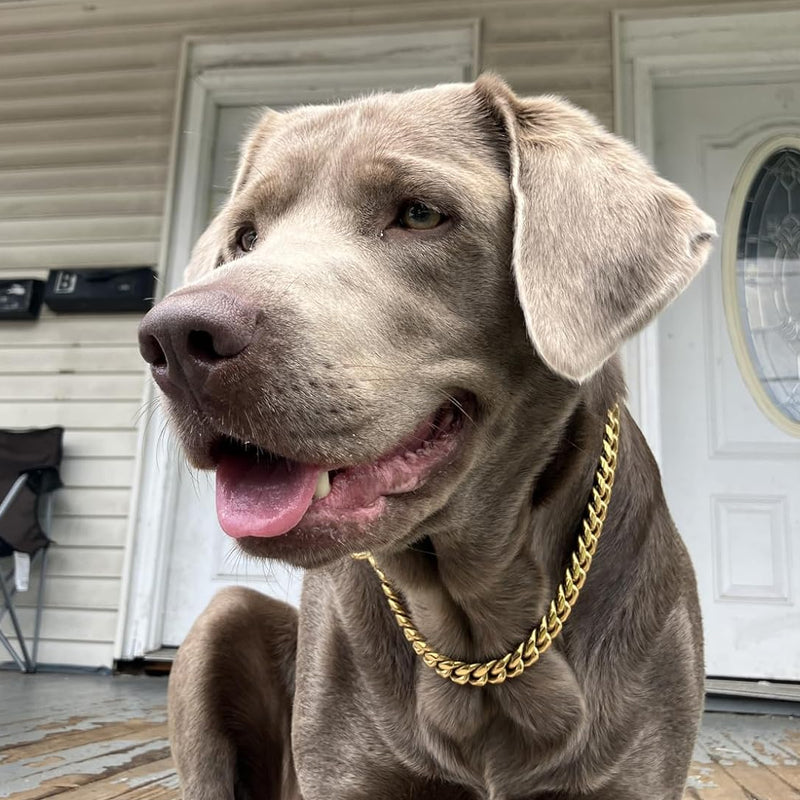 Absolutely. The links are tightly connected and built for strength, not decoration only. It’s suitable for energetic dogs and regular walks, while still maintaining a premium, luxury appearance.